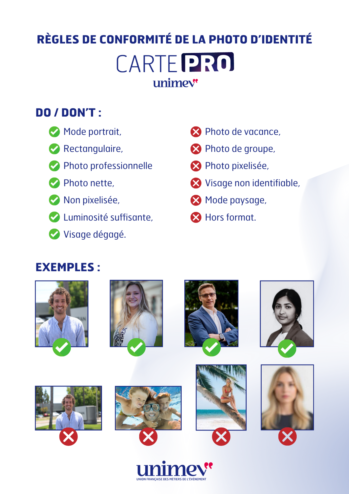 Pour que votre carte pro soit validée vous aurez besoin de transmettre une photo, merci de respecter les règles de conformité